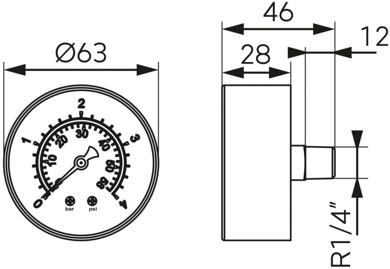 Glycerínový manometer 1/4" so zadným pripojením (0 – 10 bar)