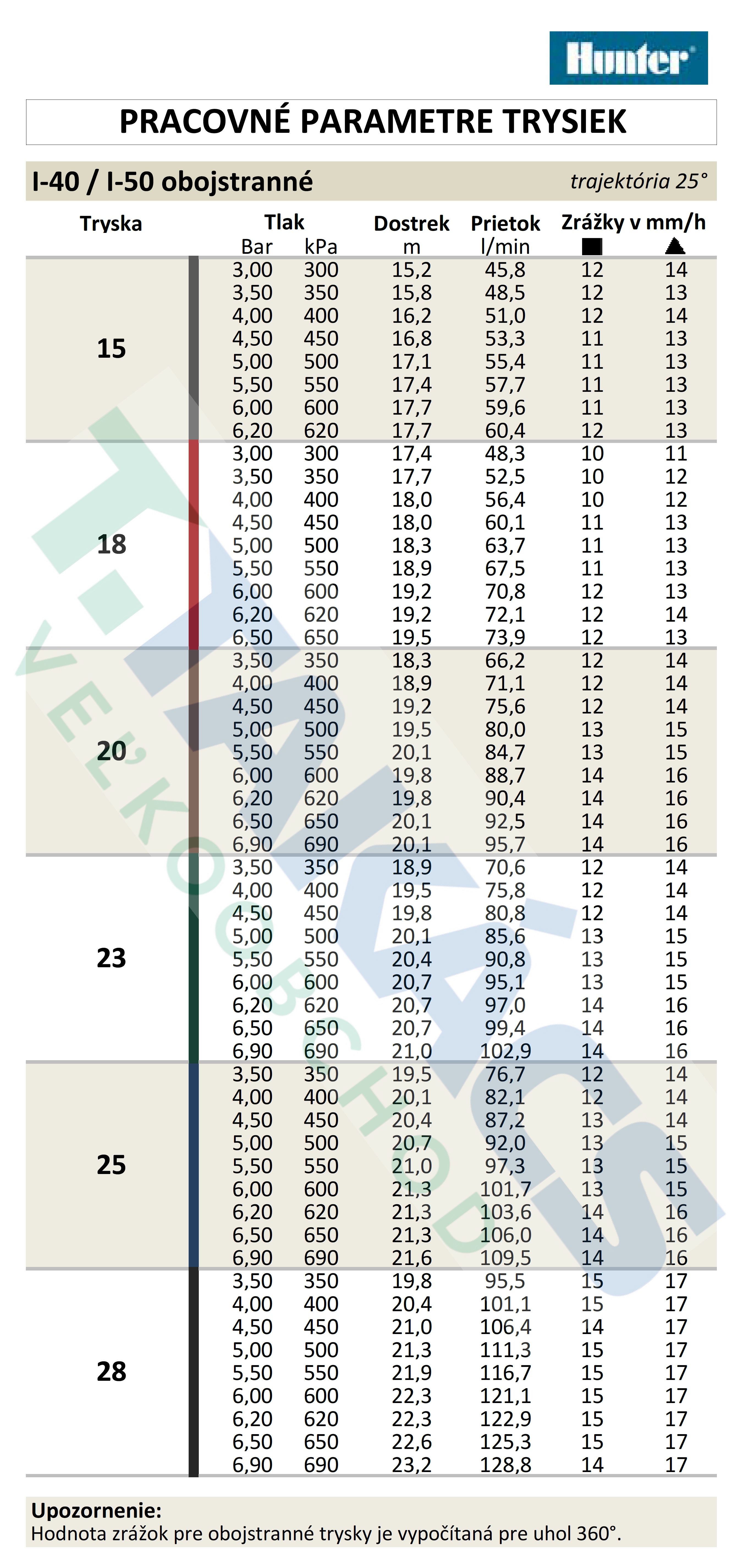 Prehľad postrekovačov Hunter sérií "I"