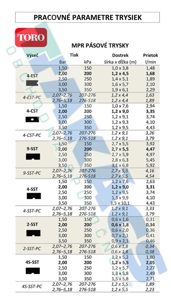 Toro sprejová tryska MPR 4S-SST,stred - dlhý okraj, pás 1,2 x 5,5 m